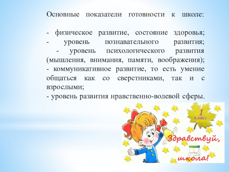 - уровень психологического развития (мышления, внимания, памяти, воображения);