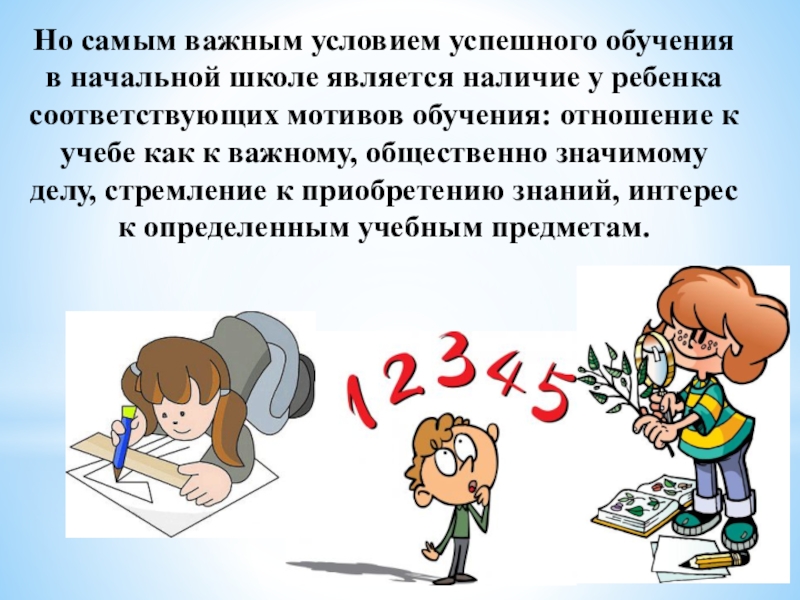 Слайд 10Но самым важным условием успешного обучения в начальной школе является наличие