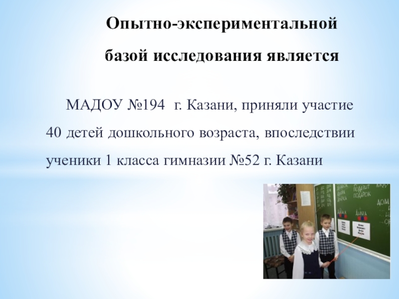 детей дошкольного возраста, впоследствии ученики 1 класса гимназии №52 г. Казани
