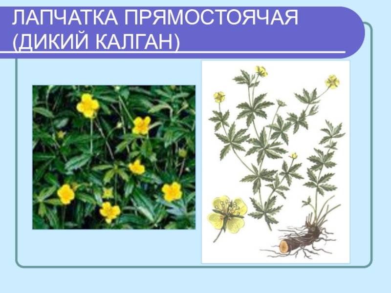 Слайд 6ЛАПЧАТКА ПРЯМОСТОЯЧАЯ (ДИКИЙ КАЛГАН)