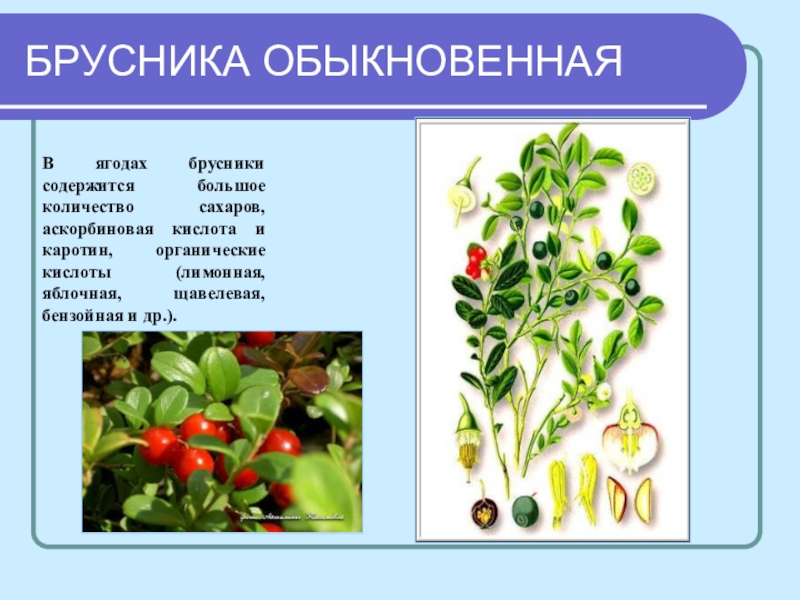 Слайд 4БРУСНИКА ОБЫКНОВЕННАЯ