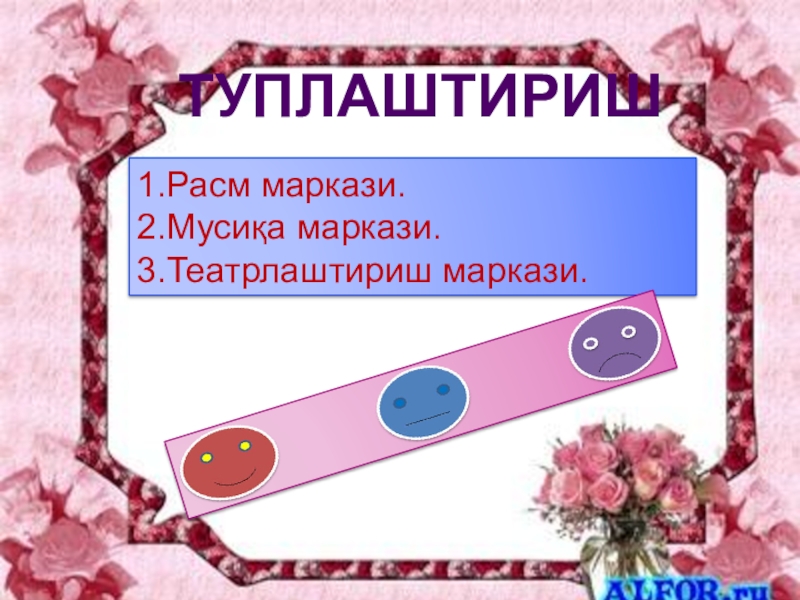 Это сайт презентаций, где можно хранить и обмениваться своими презентациями, докладами, проектами, шаблонами в формате PowerPoint с другими пользователями. Мы помогаем школьникам, студентам, учителям, преподавателям хранить и обмениваться учебными материалами.