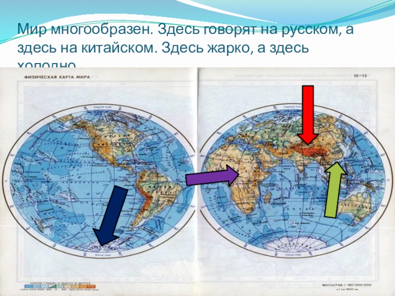 Слайд 6Мир многообразен. Здесь говорят на русском, а здесь на китайском. Здесь