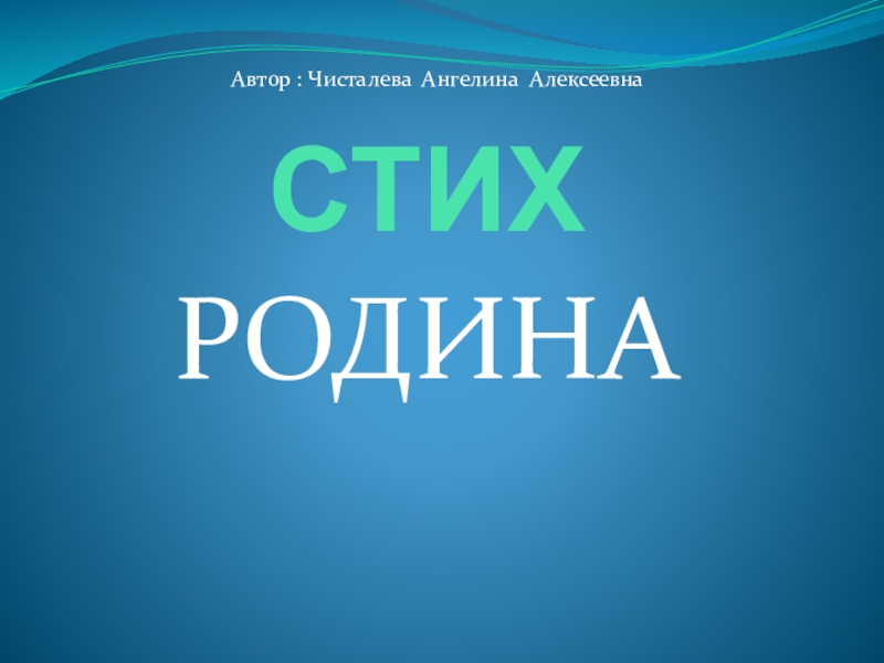 СТИХРОДИНААвтор : Чисталева Ангелина Алексеевна