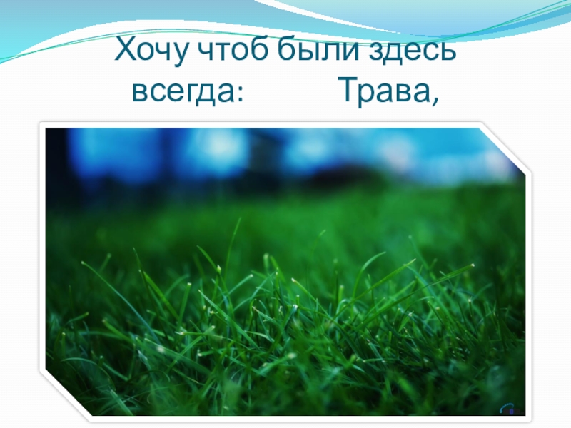 Слайд 14Хочу чтоб были здесь всегда: Трава,