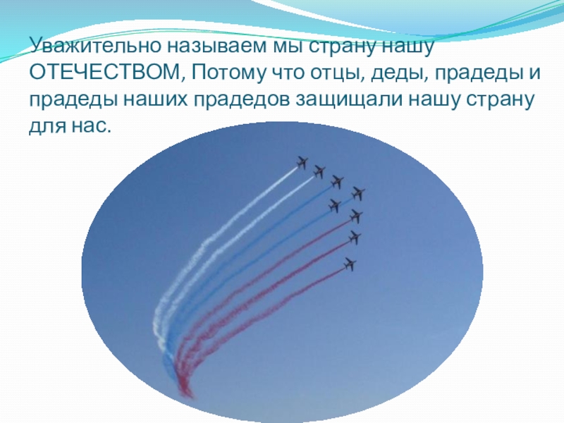 Уважительно называем мы страну нашу ОТЕЧЕСТВОМ, Потому что отцы, деды, прадеды и прадеды наших прадедов защищали нашу