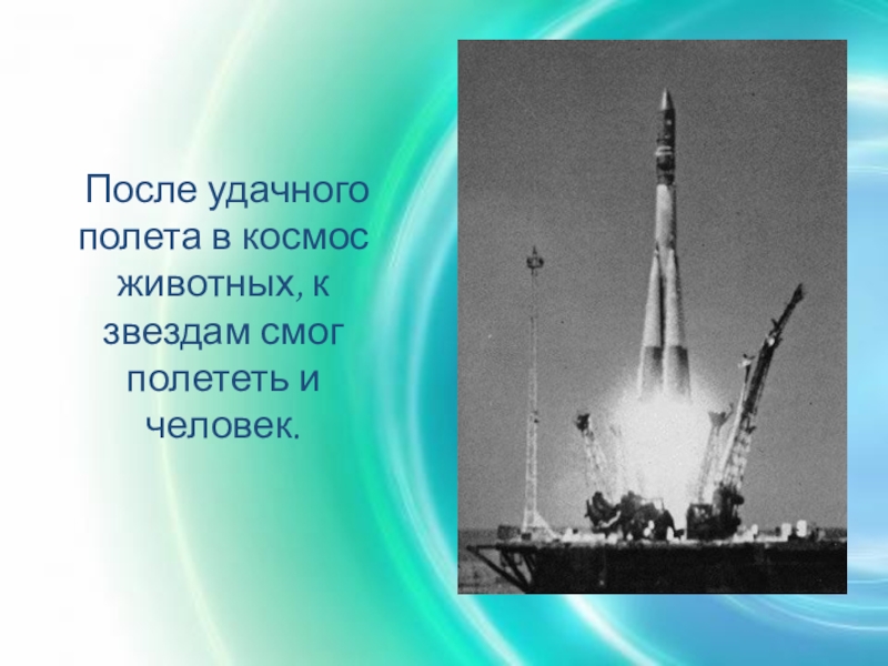 Слайд 9 После удачного полета в космос животных, к звездам смог полететь