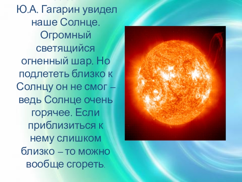 Ю.А. Гагарин увидел наше Солнце. Огромный светящийся огненный