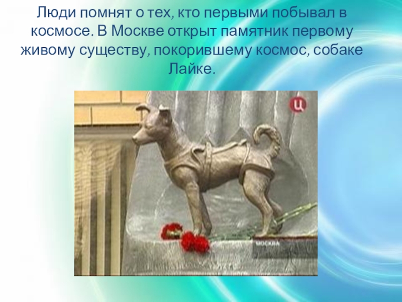 Слайд 19Люди помнят о тех, кто первыми побывал в космосе. В Москве