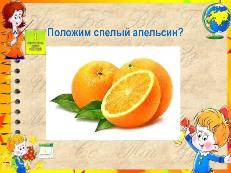 Слайд 10Положим спелый апельсин?