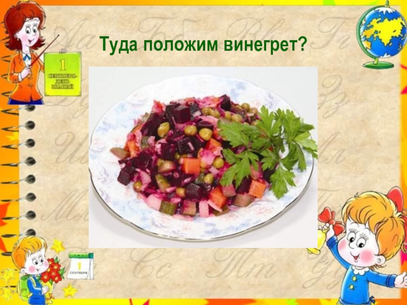 Слайд 9Туда положим винегрет?