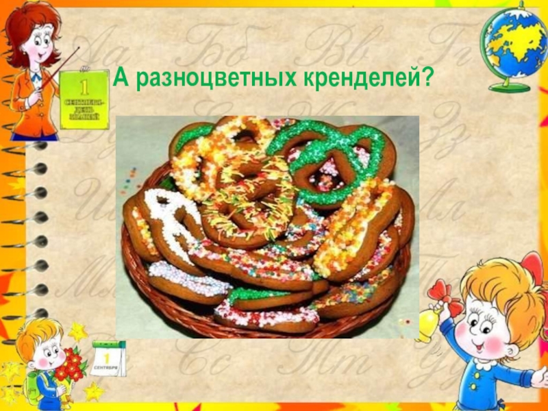 Слайд 15А разноцветных кренделей?