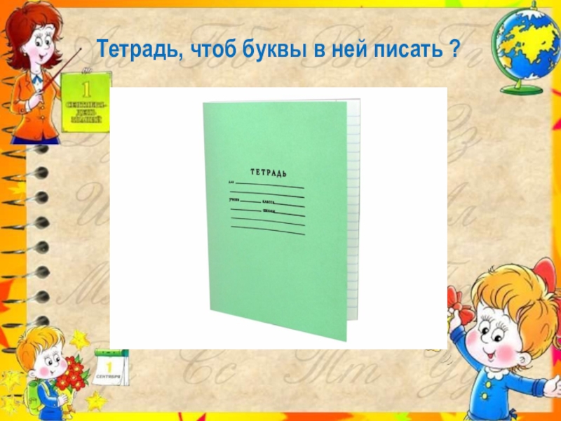 Слайд 11 Тетрадь, чтоб буквы в ней писать ?