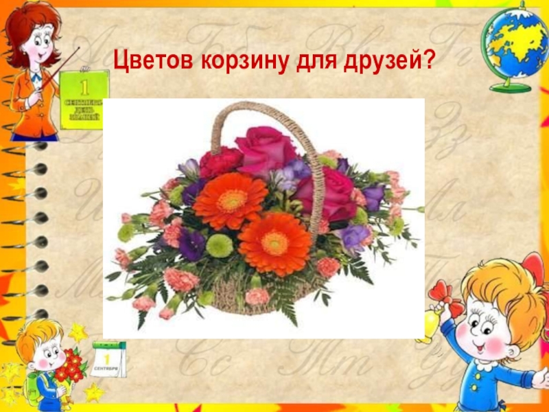 Слайд 13Цветов корзину для друзей?
