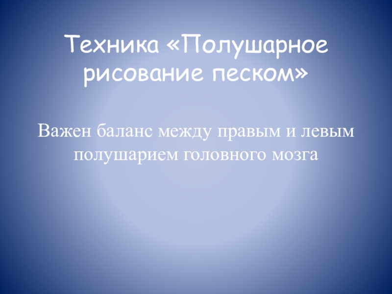 Слайд 7Техника «Полушарное рисование песком»