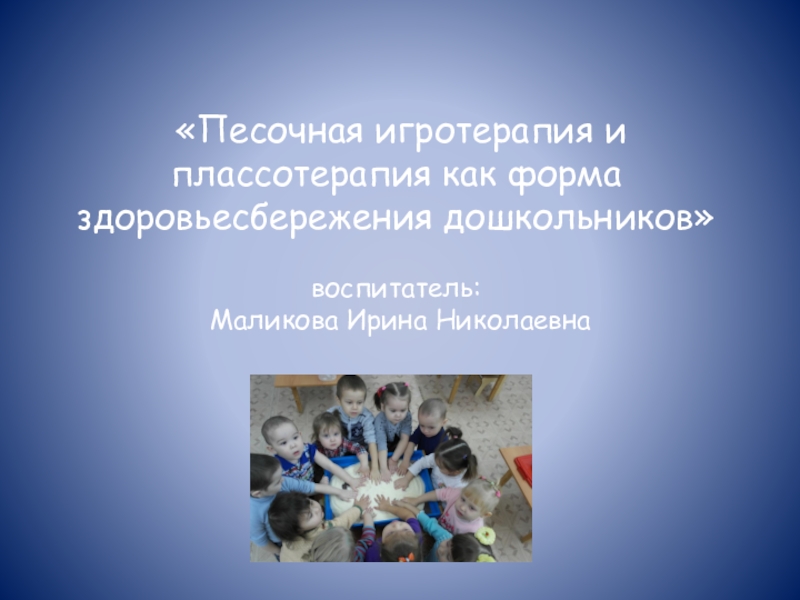 «Песочная игротерапия и плассотерапия как форма здоровьесбережения дошкольников»    воспитатель:  Маликова Ирина Николаевна