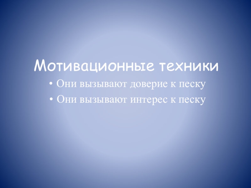 Мотивационные техникиОни вызывают доверие к пескуОни вызывают интерес к песку