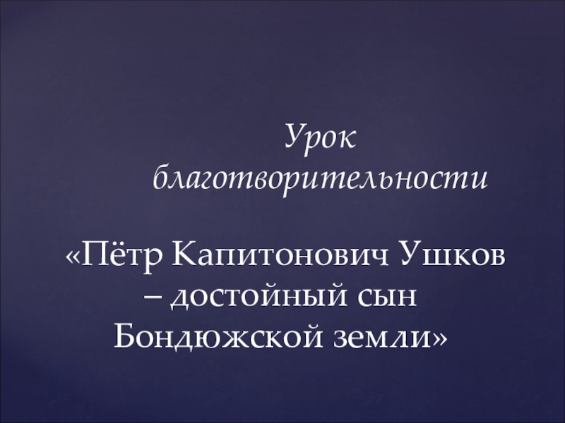 Презентация, доклад на тему Петр Капитонович Ушков - достойный сын Бондюжской земли