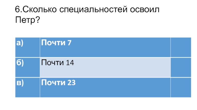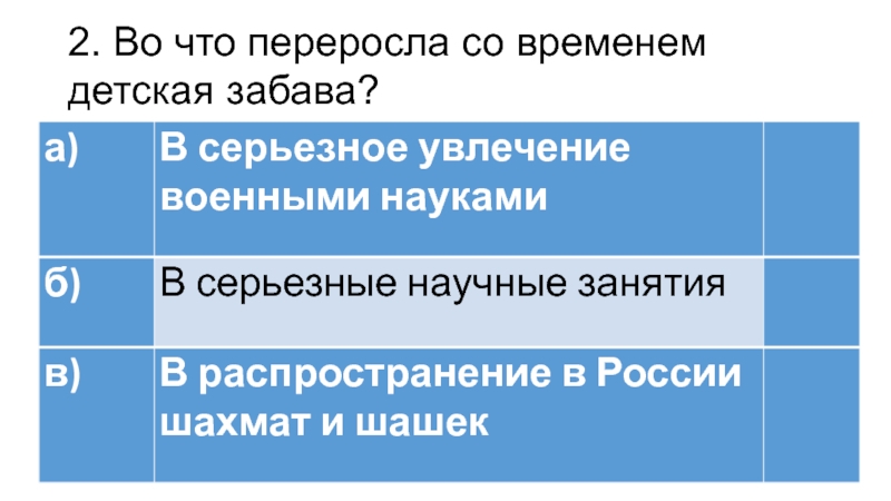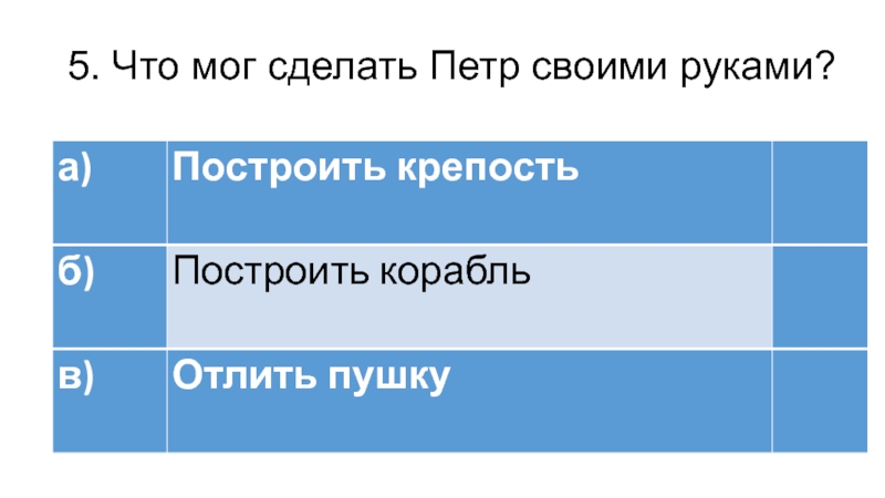Слайд 11.Укажи одно из любимейших увлечений маленького Петра: