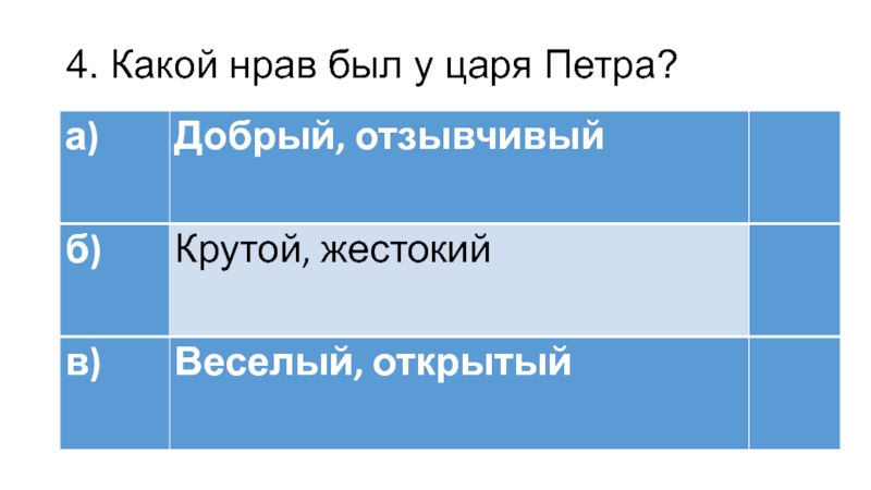 Презентация, доклад на тему Петр Великий, презентация - тест