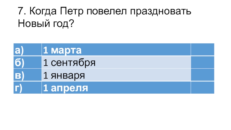 Слайд 77. Когда Петр повелел праздновать Новый год?