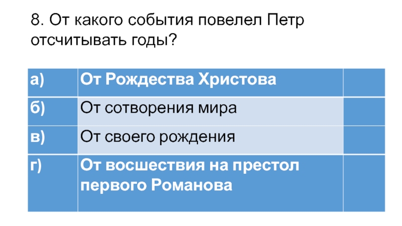 Слайд 88. От какого события повелел Петр отсчитывать годы?