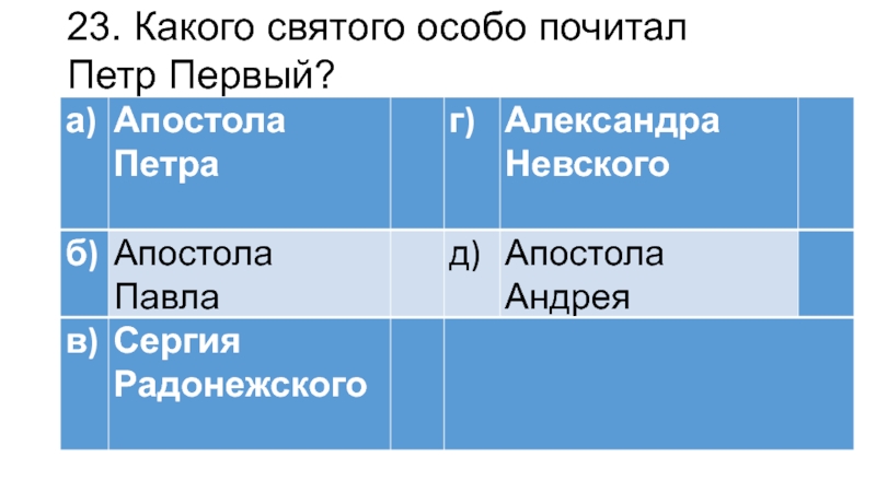 Слайд 2323. Какого святого особо почитал Петр Первый?