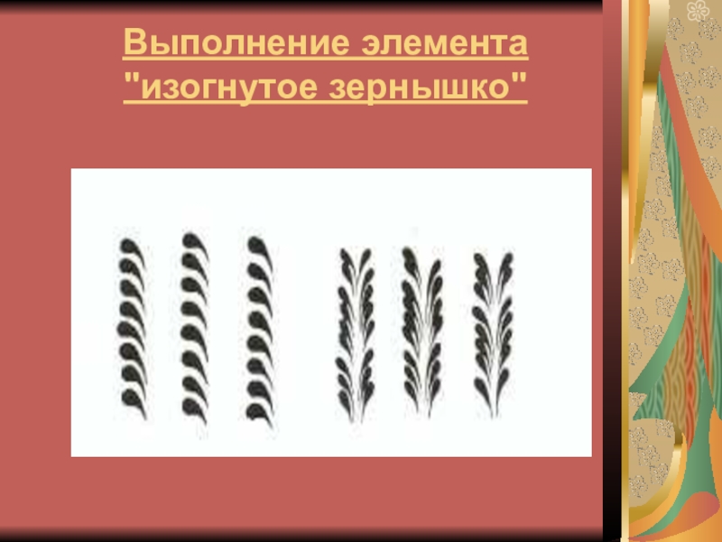 Слайд 15Выполнение элемента "изогнутое зернышко"
