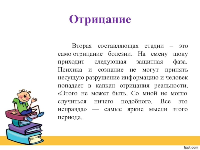 Вторая составляющая стадии – это само отрицание болезни. На смену