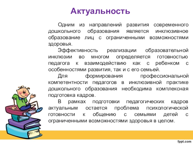 Эффективность реализации образовательной инклюзии во многом определяется готовностью педагога к взаимодействию как с ребенком с особенностями развития, так и с его семьей.