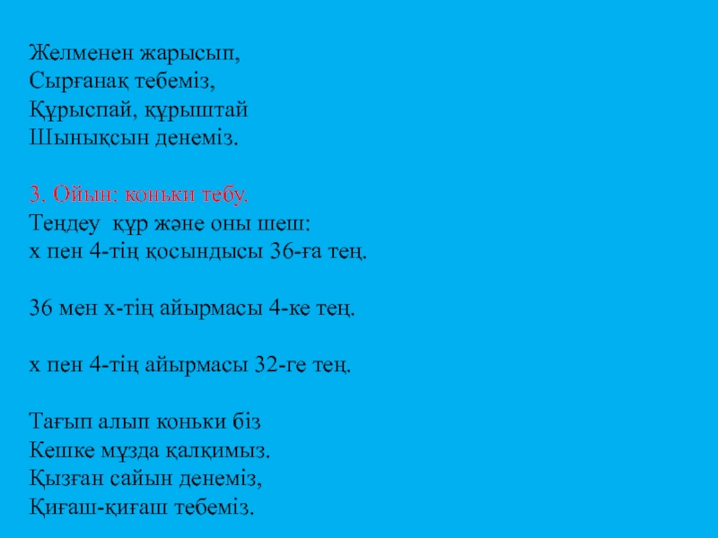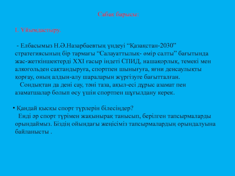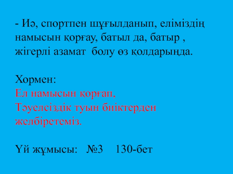 3. Қазақстанның болашағына деген сенім және білімнің әрқашан қымбат екенін түсіне білуге тәрбиелеу. Салауатты өмір салтын насихаттау.