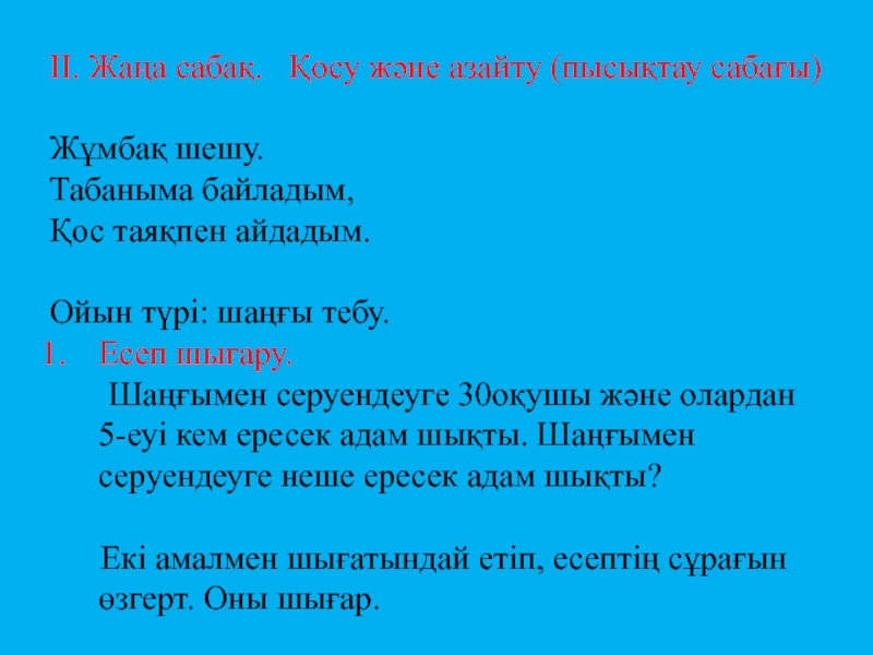 қосу және екі таңбалы саннан азайту тәсілдерін пысықтау.