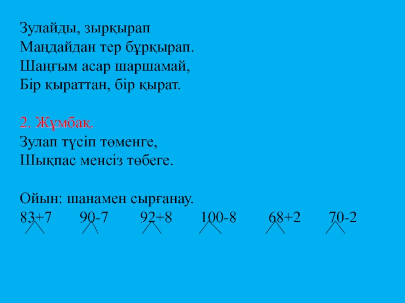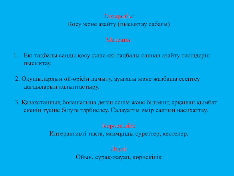 2. Оқушылардың ой-өрісін дамыту, ауызшы және жазбаша есептеу дағдыларын қалыптастыру.