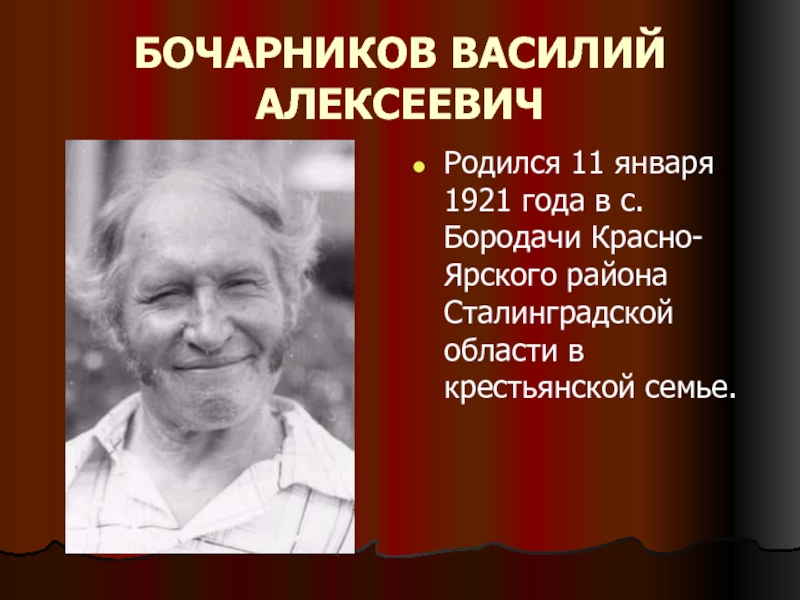Слайд 3БОЧАРНИКОВ ВАСИЛИЙ АЛЕКСЕЕВИЧ