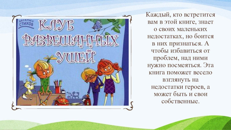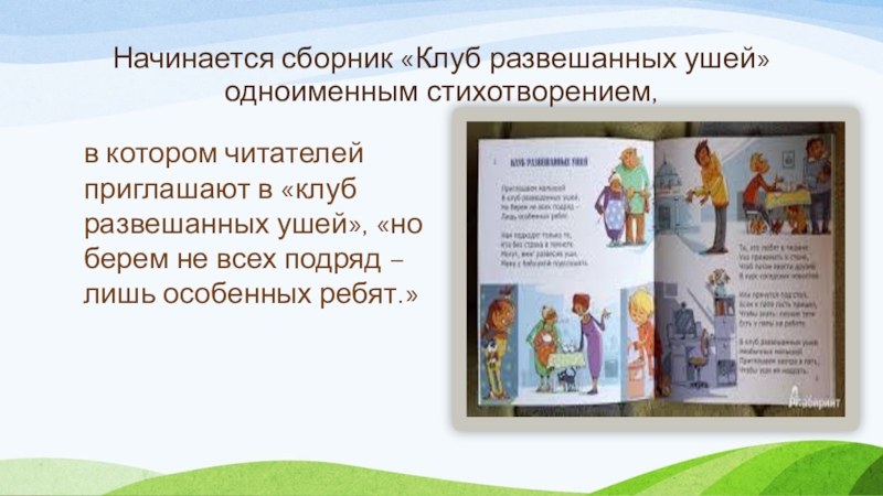 Слайд 5Начинается сборник «Клуб развешанных ушей» одноименным стихотворением,