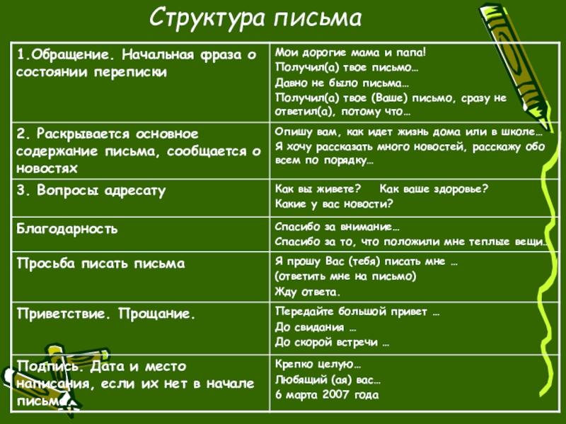 Структура письма