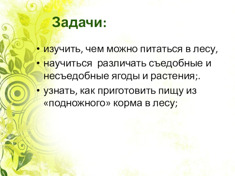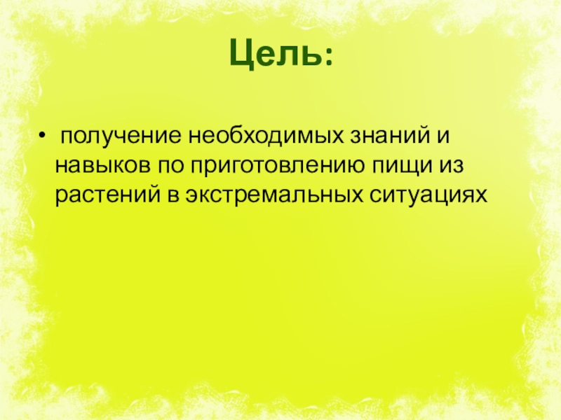 получение необходимых знаний и навыков по приготовлению пищи из растений
