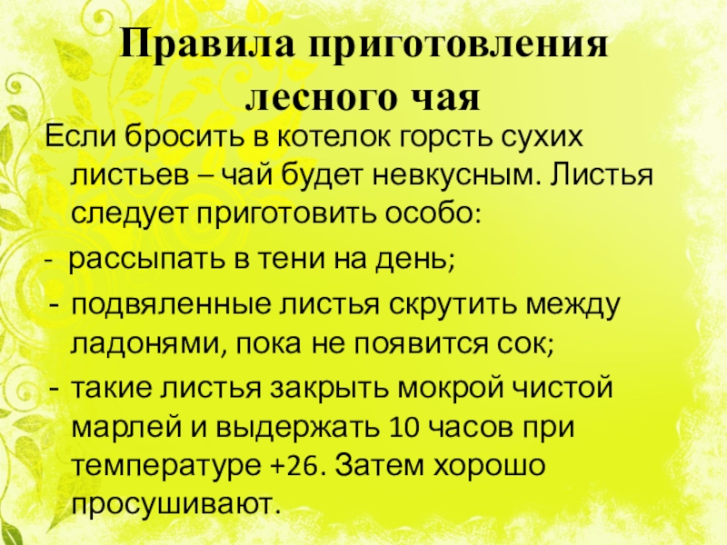 Слайд 16Правила приготовления лесного чая