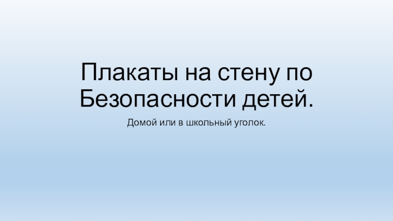 Презентация, доклад на тему Плакаты на стену домой или в классный уголок по Безопасности школьников