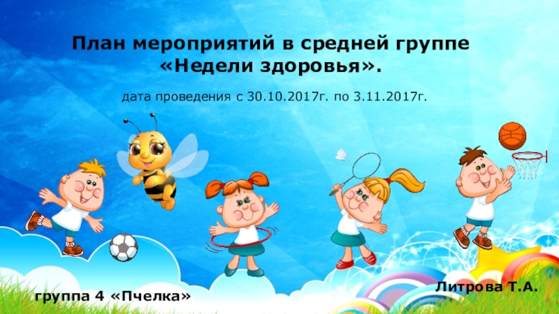 Слайд 1План мероприятий в средней группе «Недели здоровья».