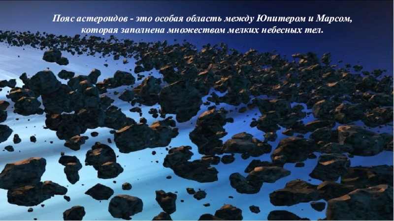 Слайд 10Пояс астероидов - это особая область между Юпитером и Марсом, которая