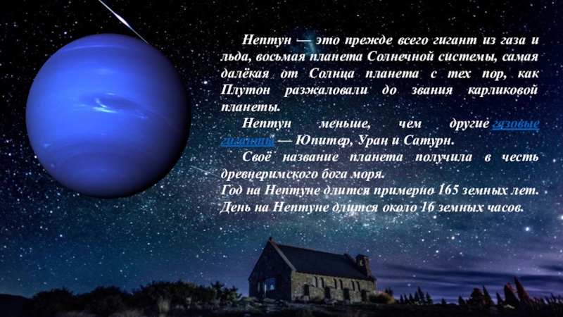 Слайд 14 Нептун — это прежде всего гигант из газа и льда, восьмая