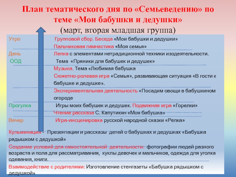 Планирование и проведение тематического дня по проекту «Семьеведение» на тему: « Мои бабушки и дедушки»