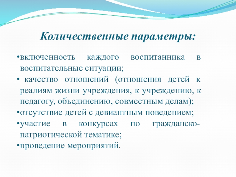 Слайд 24Количественные параметры: