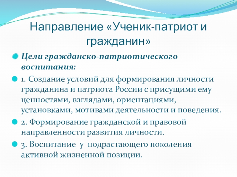 Цели гражданско-патриотического воспитания: