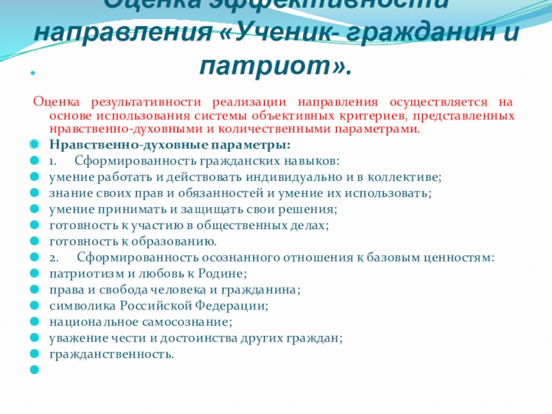Слайд 23Оценка эффективности направления «Ученик- гражданин и патриот».