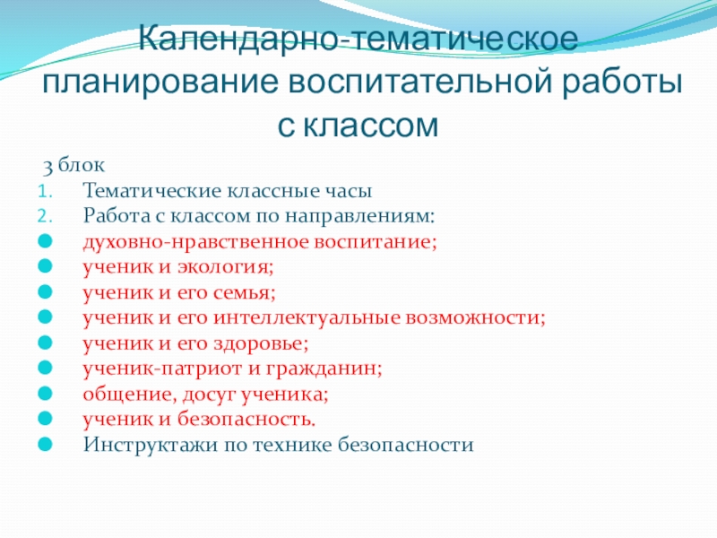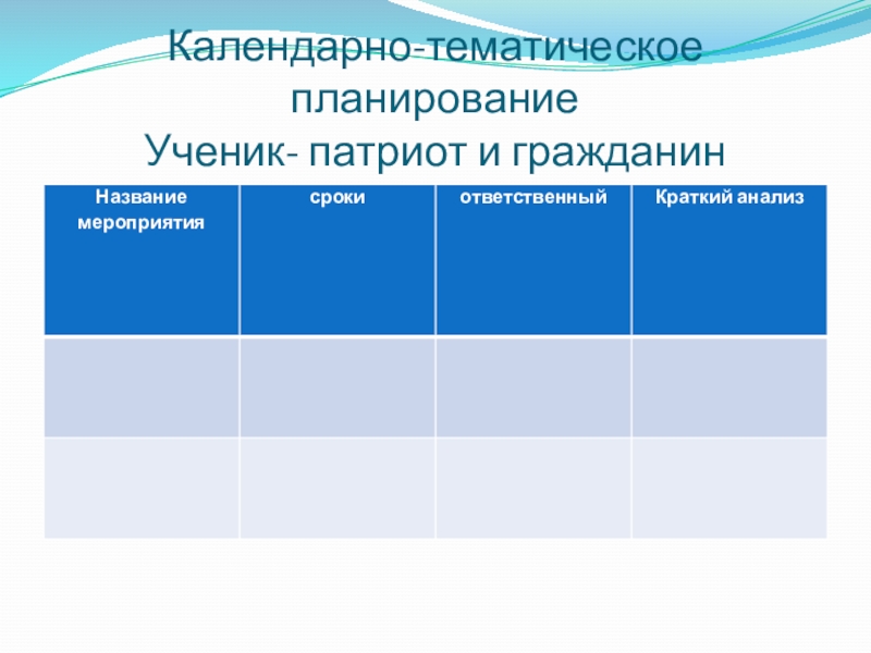 Слайд 7Календарно-тематическое планирование воспитательной работы с классом