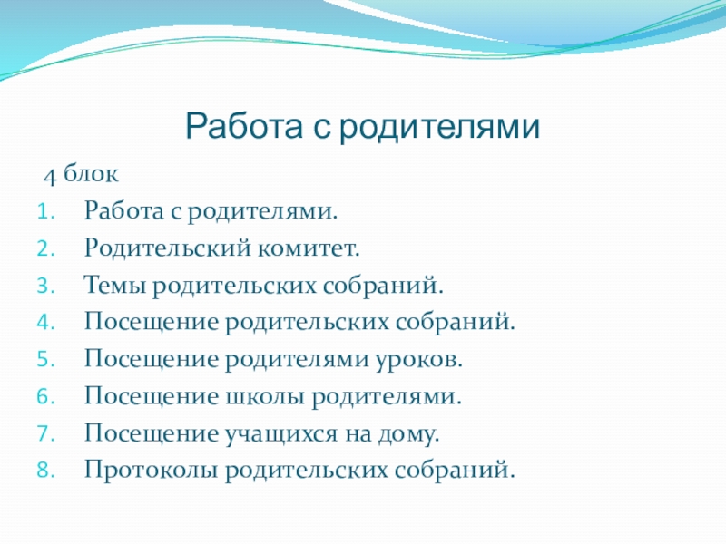 плана работы с родителями.