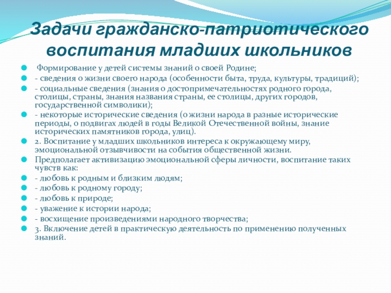 Слайд 17Задачи гражданско-патриотического воспитания младших школьников
