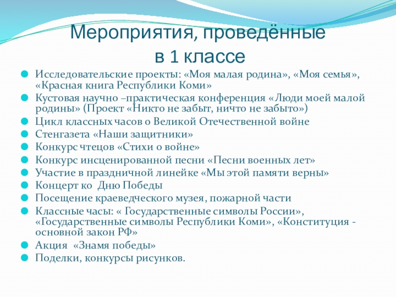 Слайд 20Мероприятия, проведённые